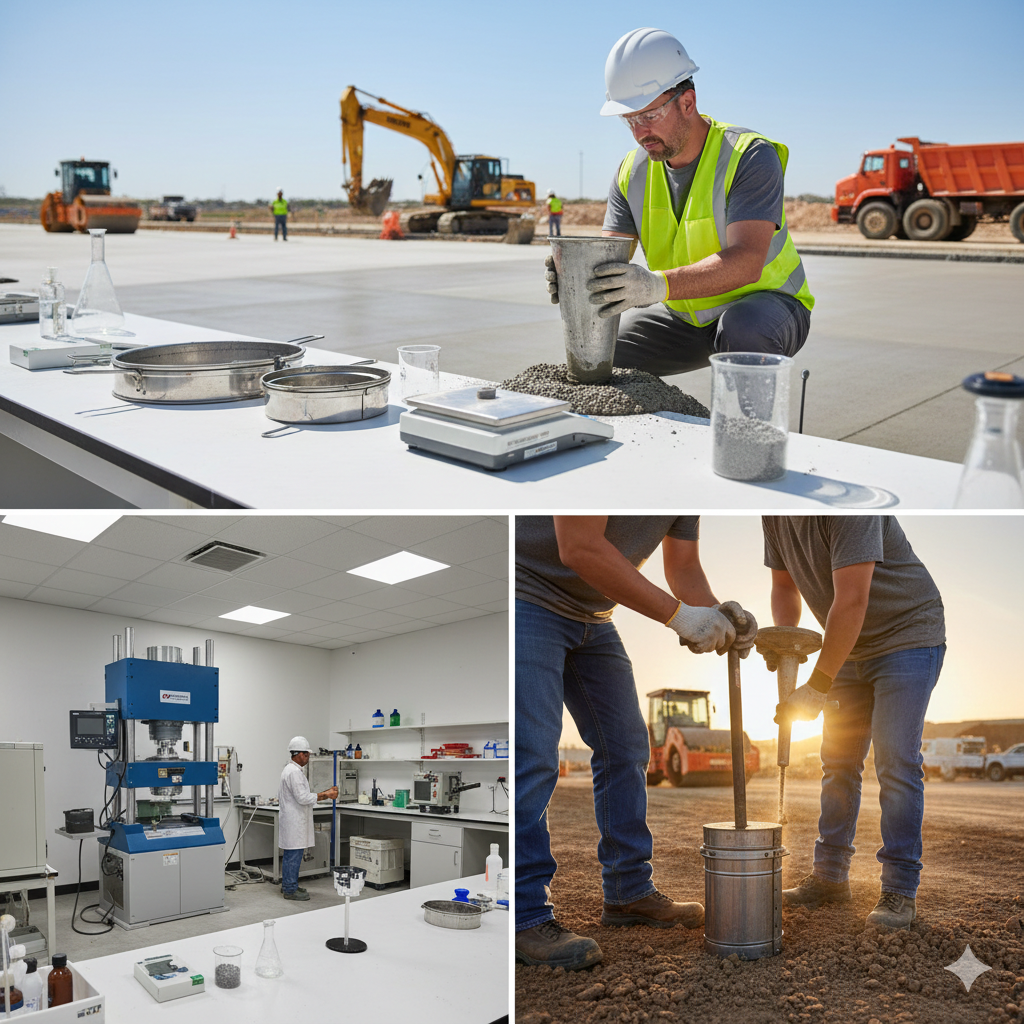 The Proctor compaction test remains essential for determining the relationship between moisture content and dry unit weight. Achieving 95% or higher compaction is non-negotiable for roadbases and foundations. To verify these results in the field, technicians often rely on sand cone density apparatus for a physical, highly reliable measurement of in-place density.